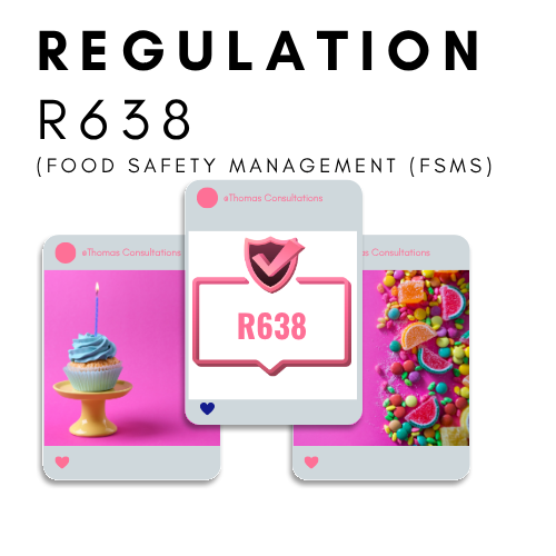 Regulation R638 is formally titled “Regulations Governing General Hygiene Requirements for Food Premises, the Transport of Food and Related Matters” under the Foodstuffs, Cosmetics and Disinfectants Act 54 of 1972.